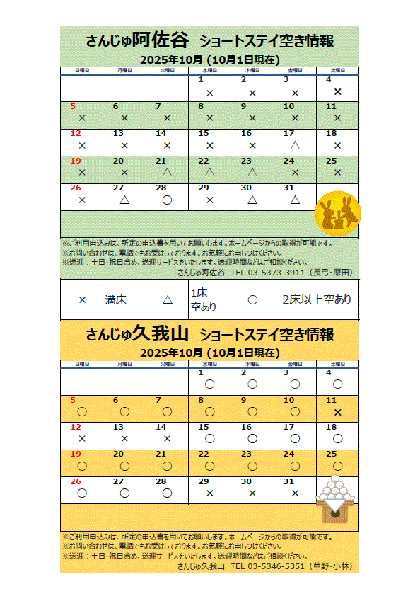 上記につきましては、居宅介護支援事業所へお知らせしておりますが、その他ご不明な点などございましたら、さんじゅ阿佐谷・さんじゅ久我山の生活相談員までお問い合わせください。