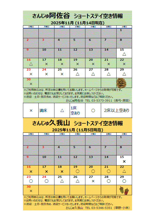 ★11/14更新★ショートステイの空き状況をお知らせします。