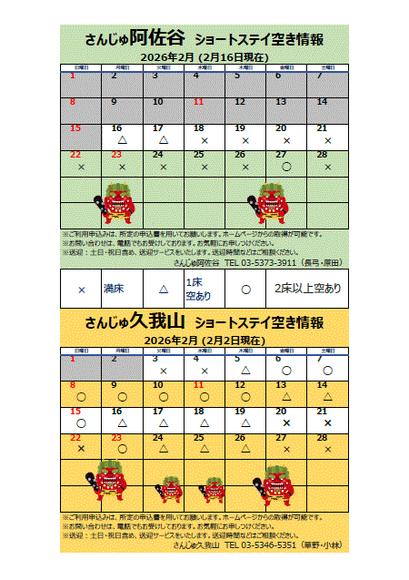 上記につきましては、居宅介護支援事業所へお知らせしておりますが、その他ご不明な点などございましたら、さんじゅ阿佐谷・さんじゅ久我山の生活相談員までお問い合わせください。