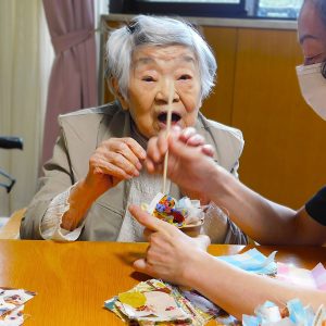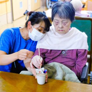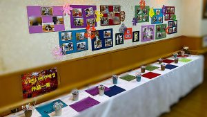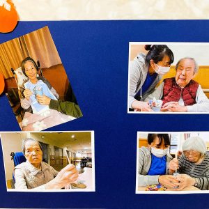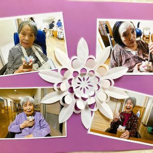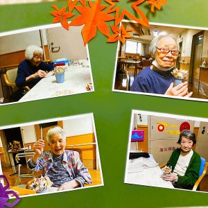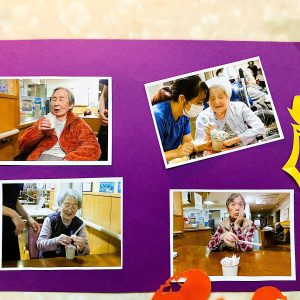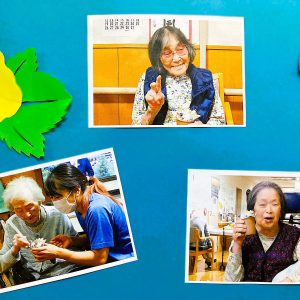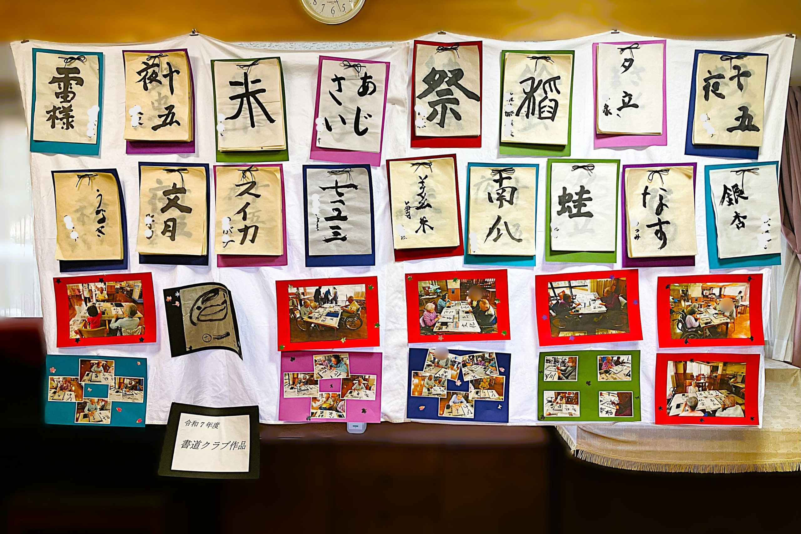 1階では、ご入居者さまが、日頃から参加しているクラブの作品や