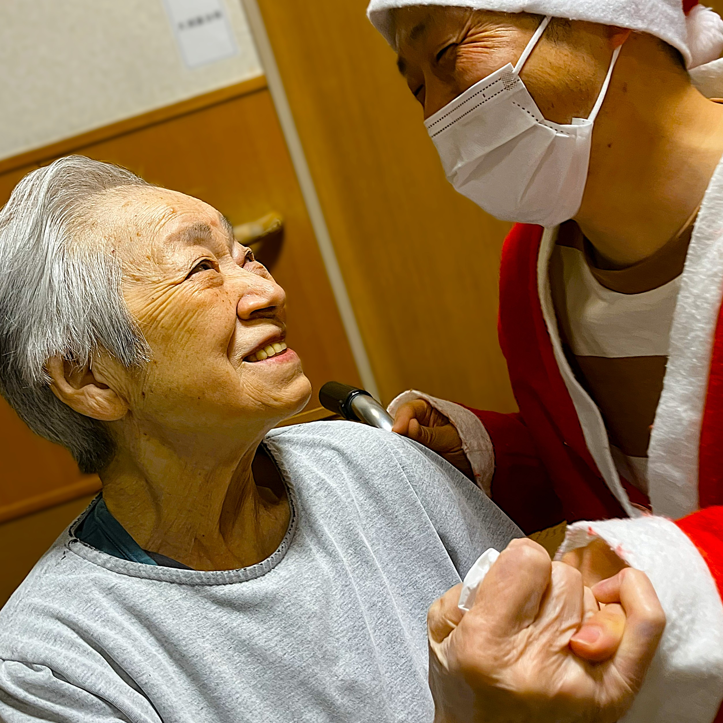 職員サンタクロースは、ご入居者様の元に出向いておりました。