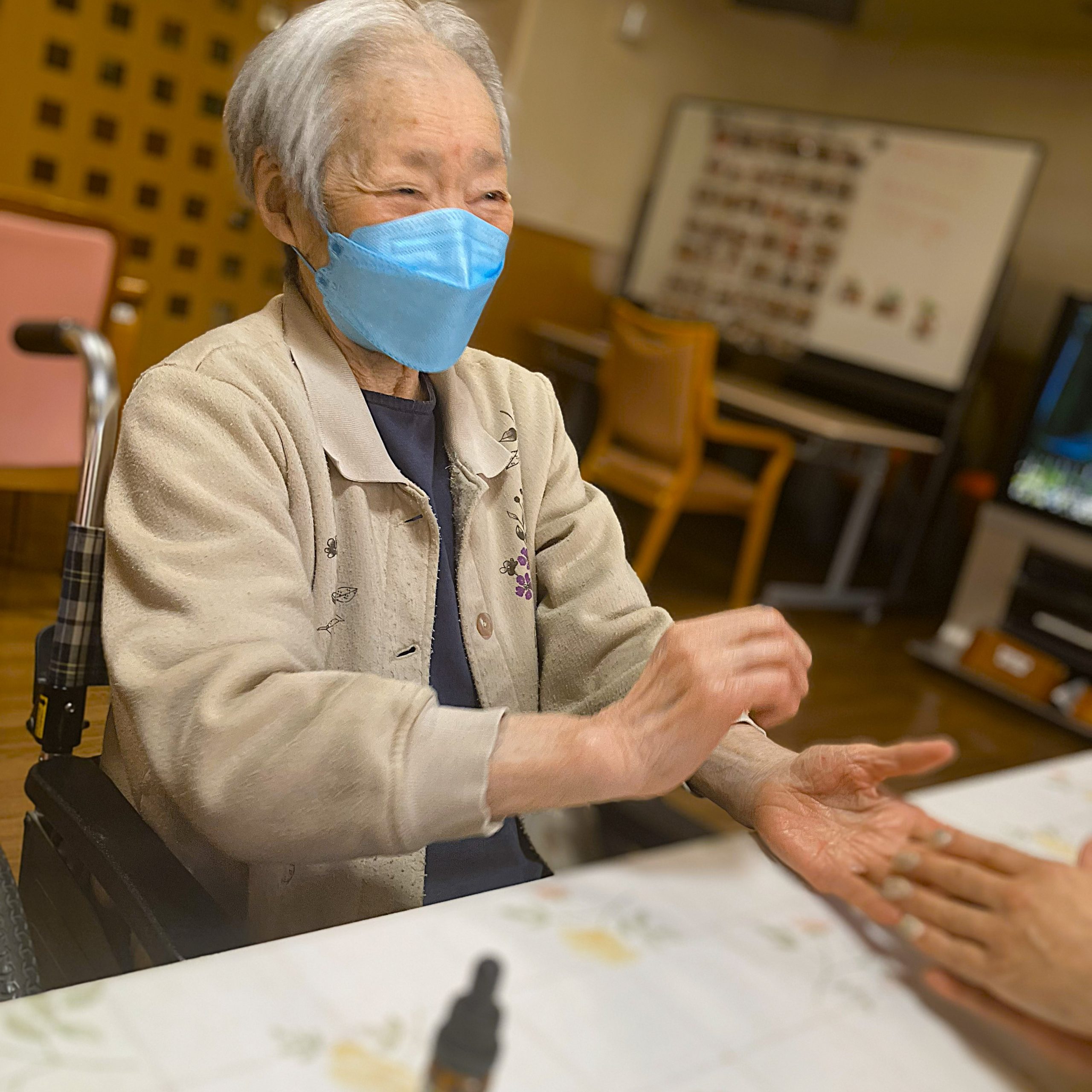 先日、ボランティア活動者の方がハンドマッサージをしてくださいました。