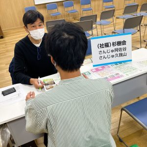 杉樹会のほか、杉並区内にて特別養護老人ホームを運営している社会福祉法人、16法人21施設が就職相談ブースを開きました。